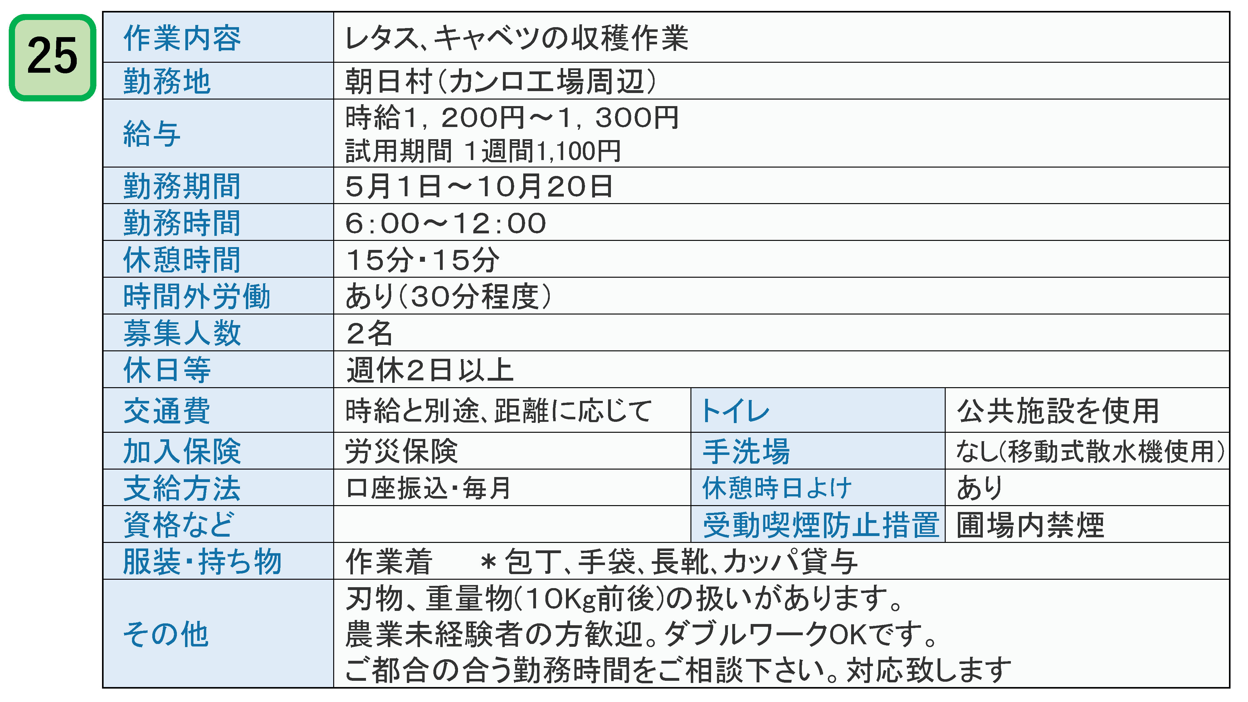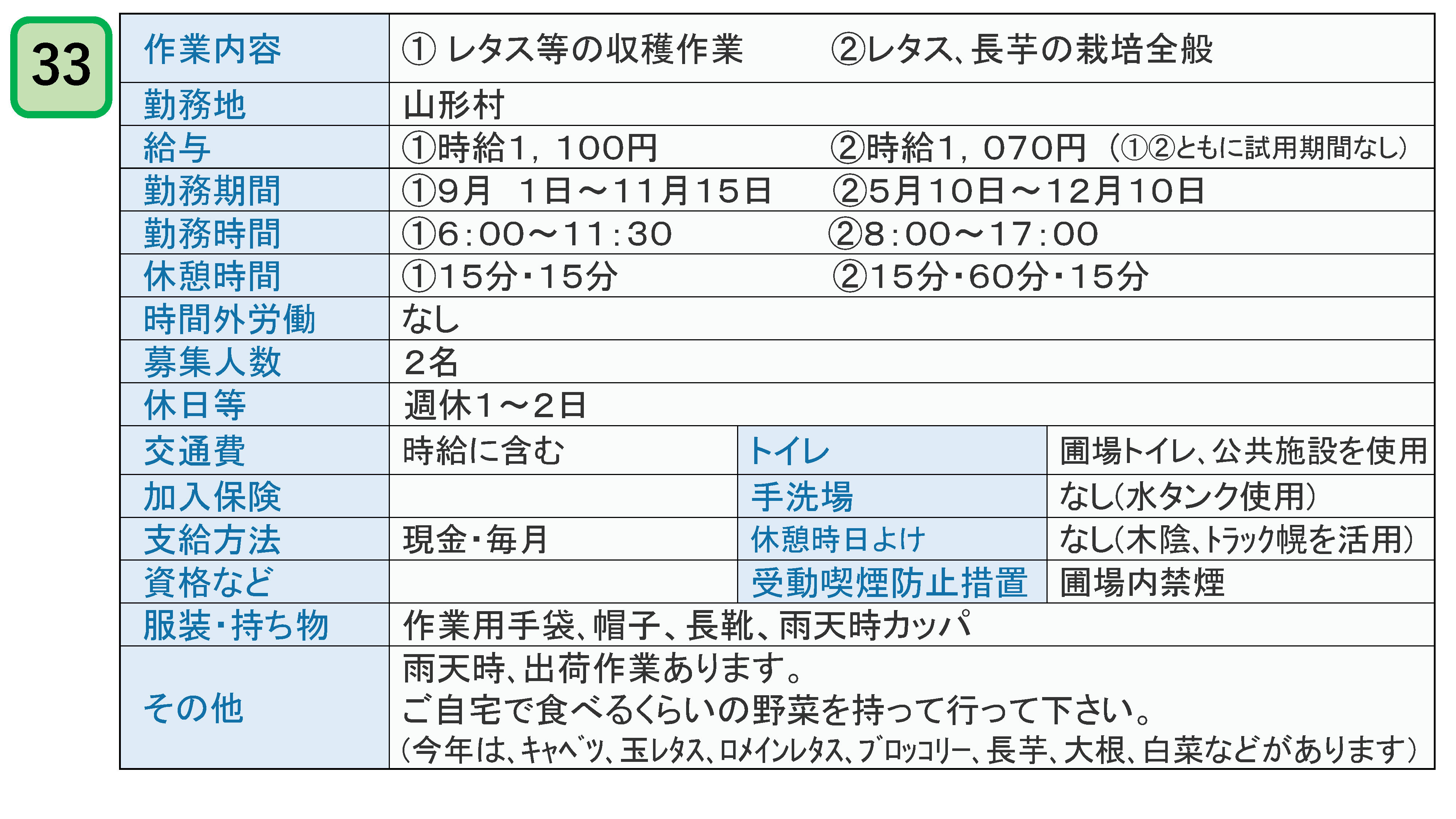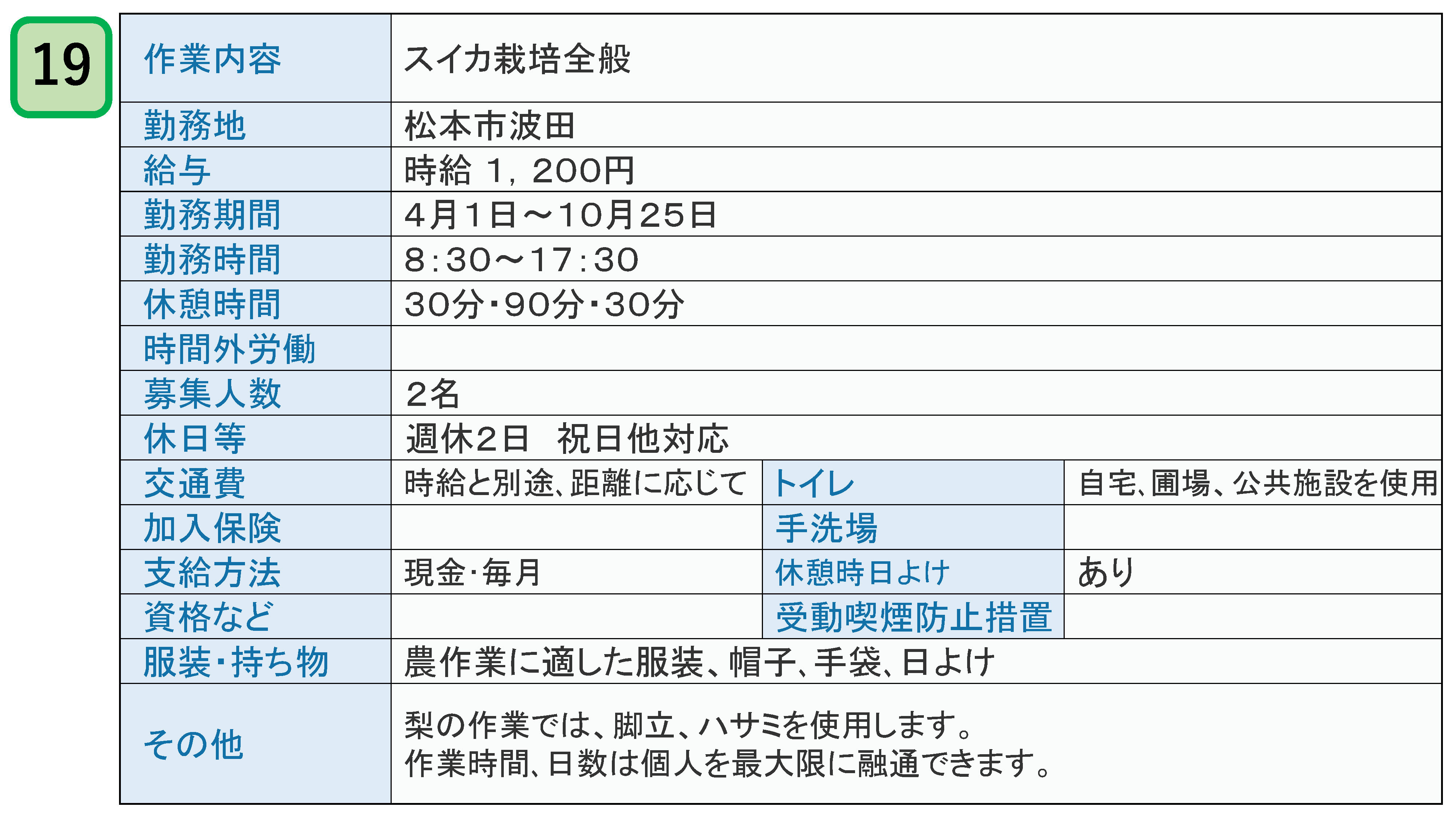 ※本ページに記載しております農作業アルバイトの募集に関する当JA農業労働銀行の事業は、職業安定法第33条の3第1項に基づく無料職業紹介事業者として行うものです。