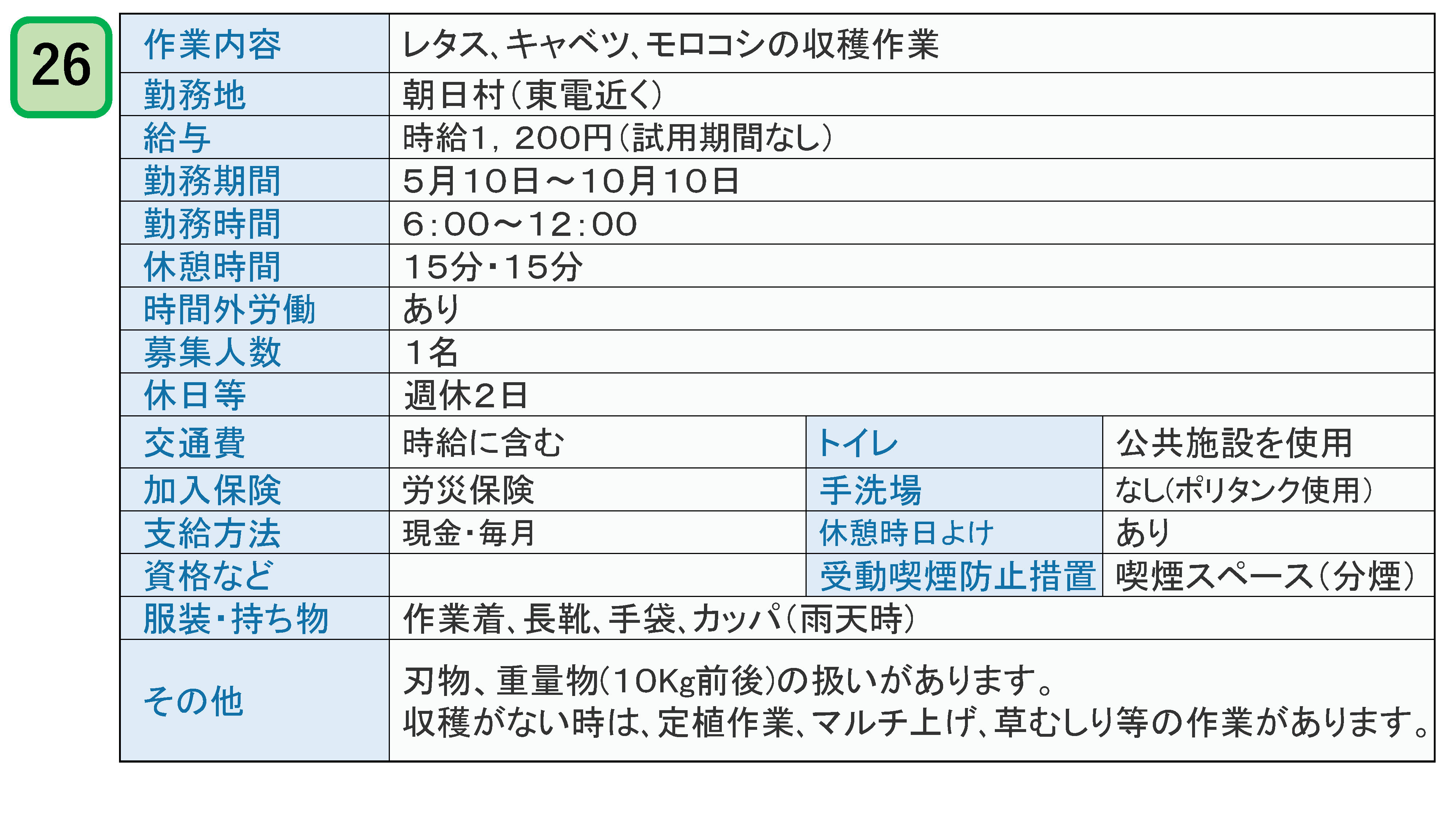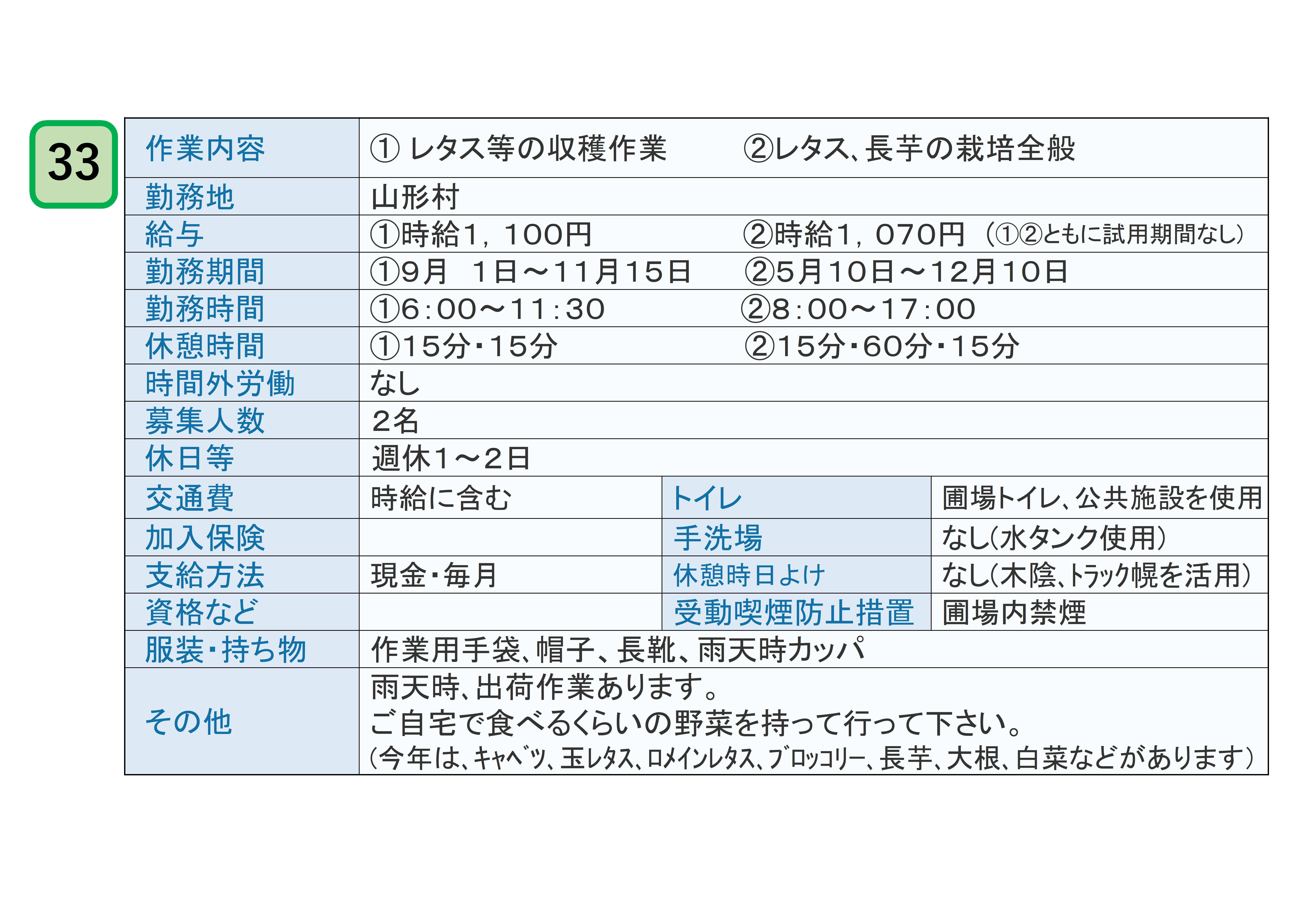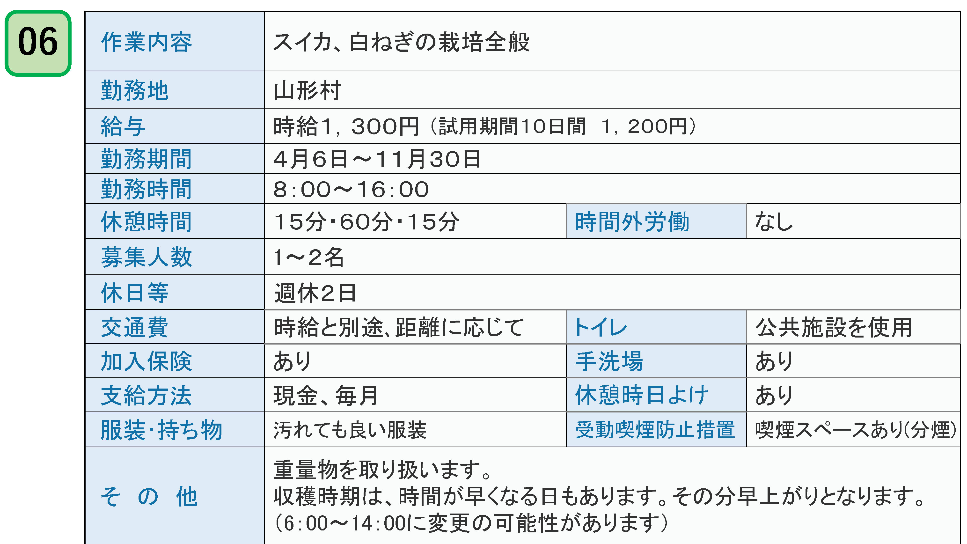 ※本ページに記載しております農作業アルバイトの募集に関する当JA農業労働銀行の事業は、職業安定法第33条の3第1項に基づく無料職業紹介事業者として行うものです。